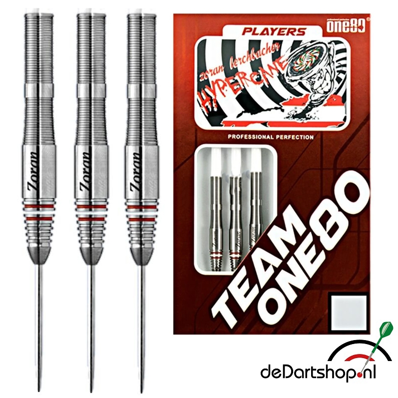 Dartpijl Gewicht: 22 Gram Dartpijl Materiaal: 90% Tungsten Dartpijl Kleur: Zilver Dart Merk: One80 Dartpunt: Black coated